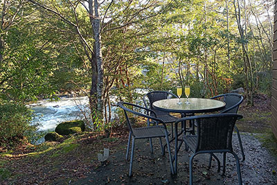 ¡Imagínate disfrutando un exquisito pisco sour o un rico asado frente a la increíble belleza del Río Llancahue y la paz que te entregará el maravilloso sonido de sus aguas!